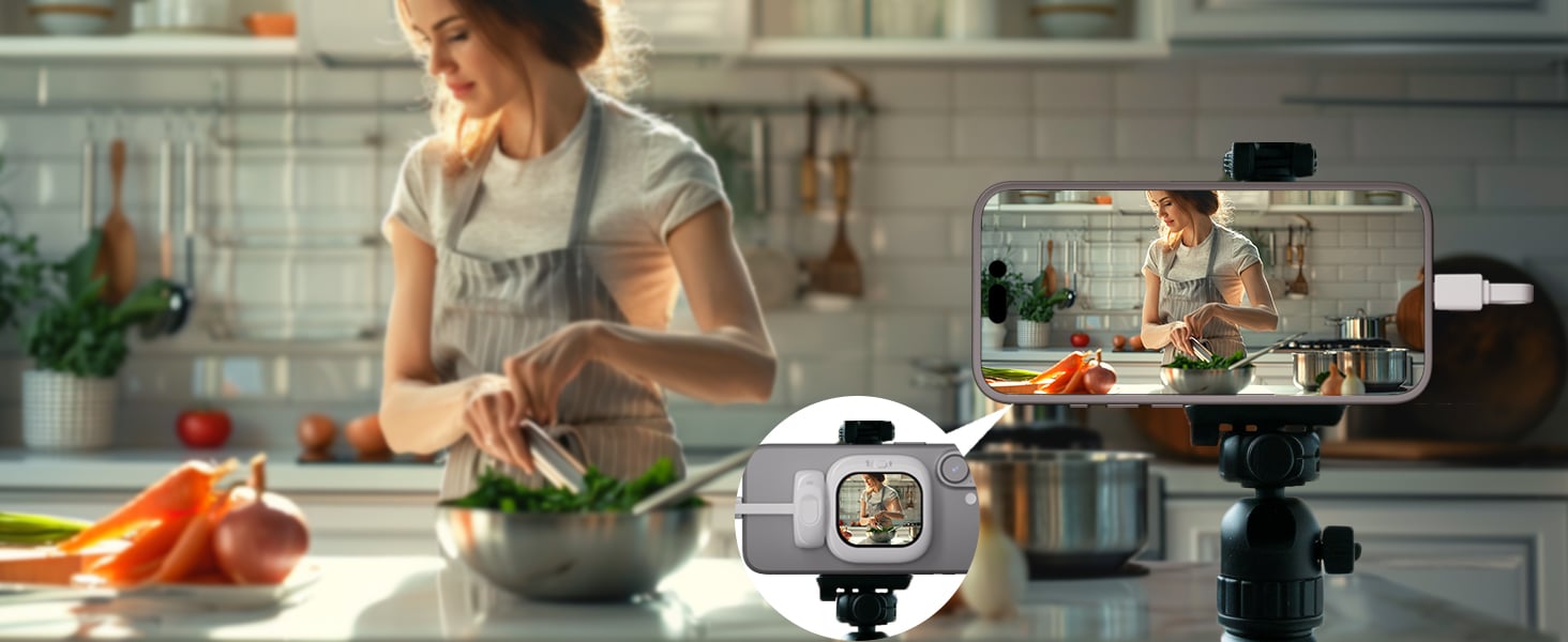 Transform your iPhone into a powerful vlogging tool with the Vlogmate Mini Vlog Selfie Monitor. Featuring a plug-and-play wired connection, this monitor mirrors your rear camera screen in real-time with zero lag, giving you much sharper and clearer images than the front camera. Perfect for TikTok videos, live streaming, or capturing high-quality selfies on the go.