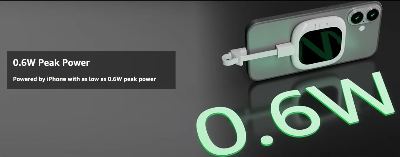 0.6W peak power ensures long-lasting use, powered directly by your iPhone.