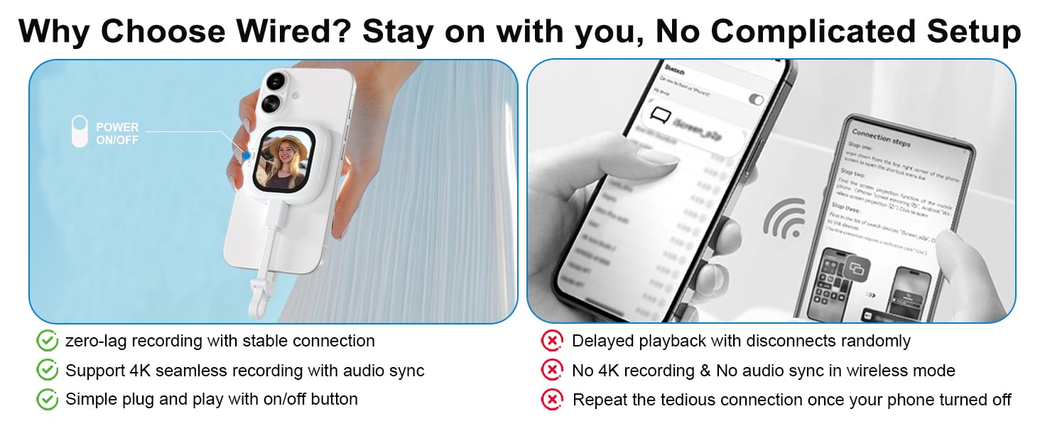 Plug-and-play wired connection ensures zero-lag real-time screen mirroring.